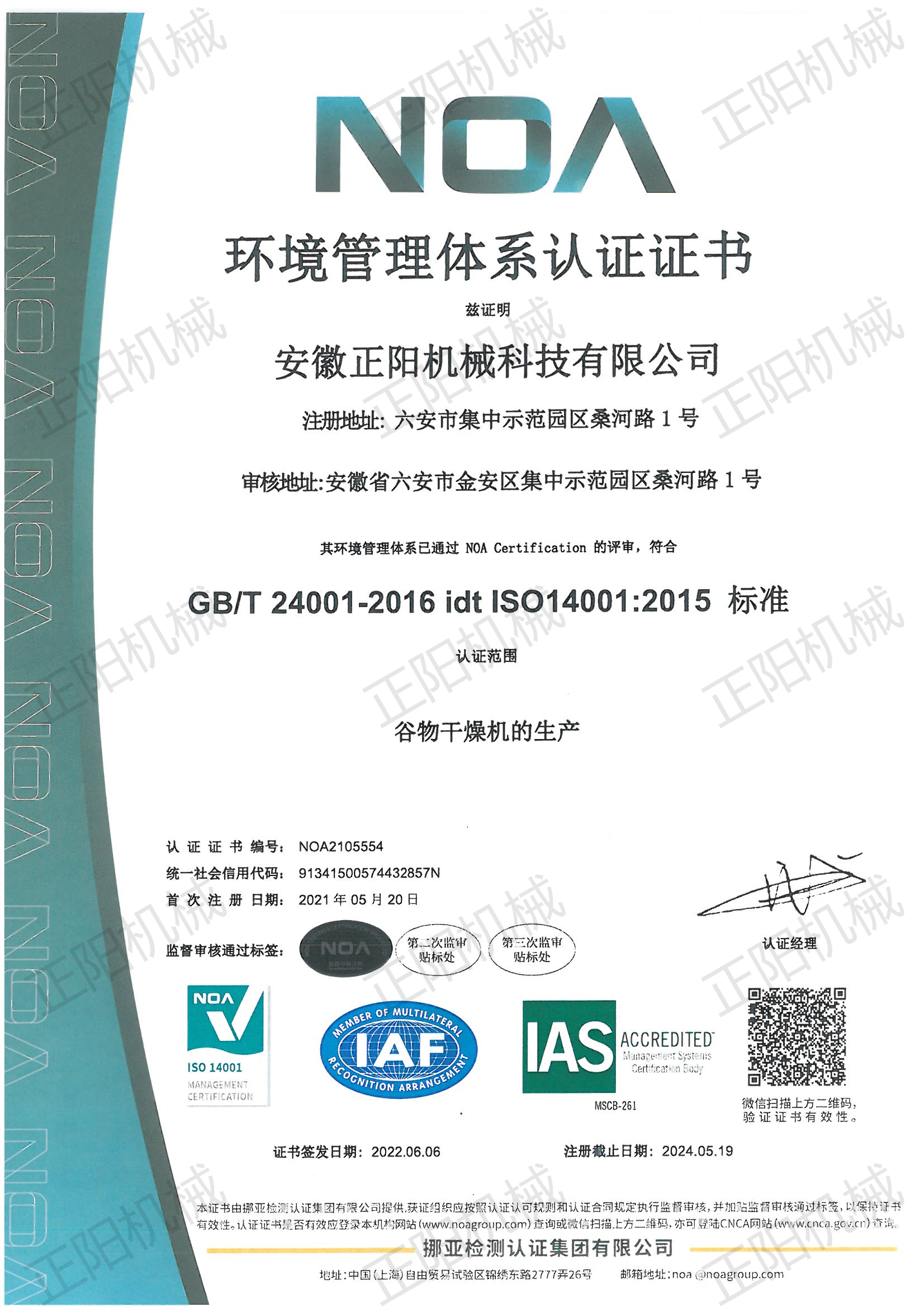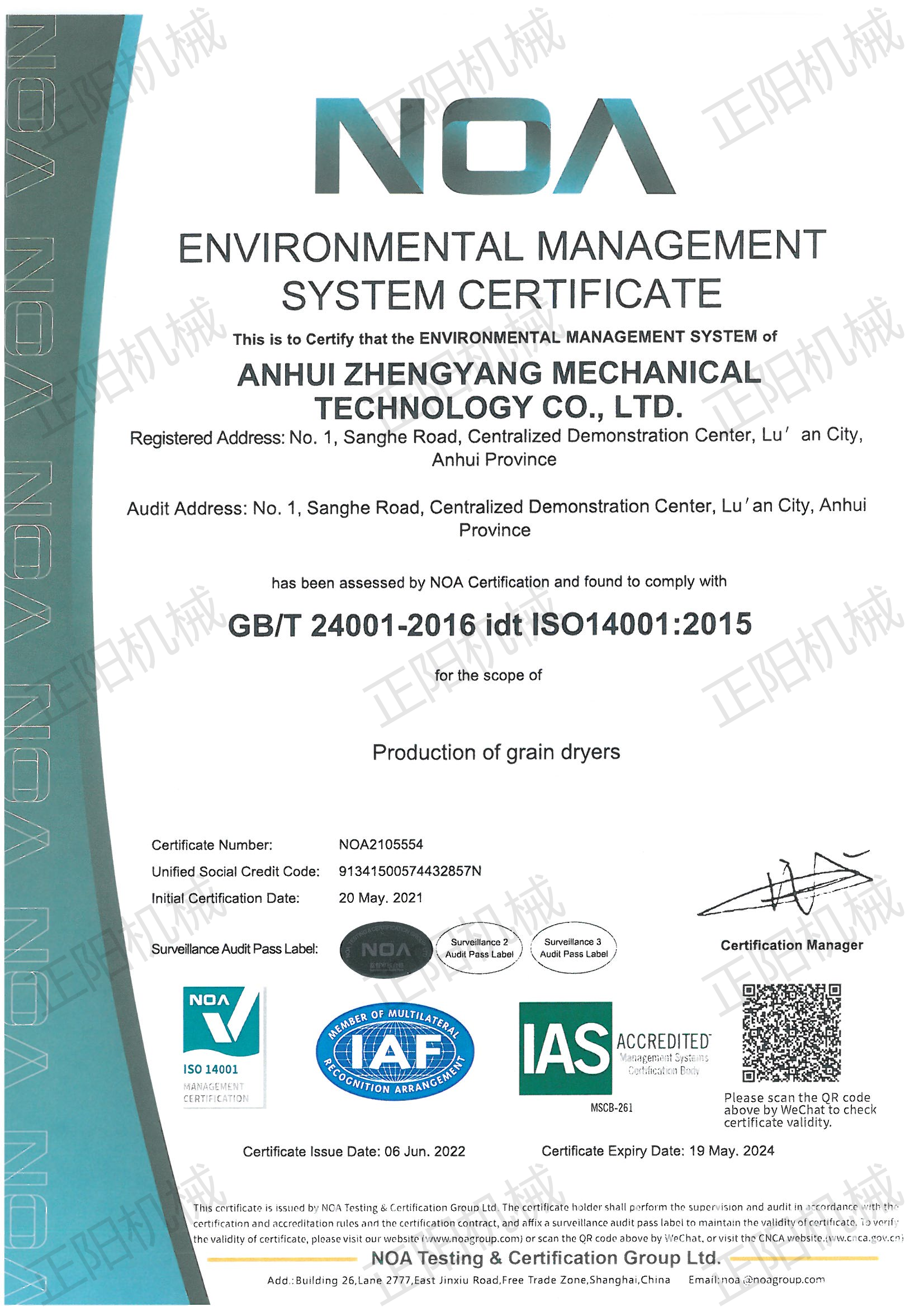 環境管理體系認證證書