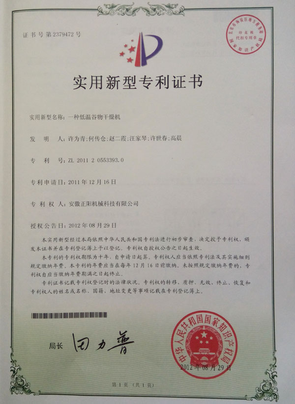 實用新型專利證書