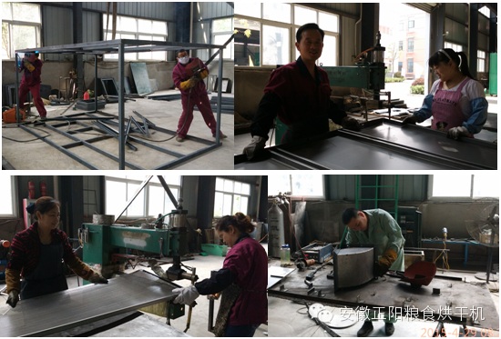 工人們正在車間內加緊生產糧食烘干機,現場機器轟鳴,焊花飛濺。